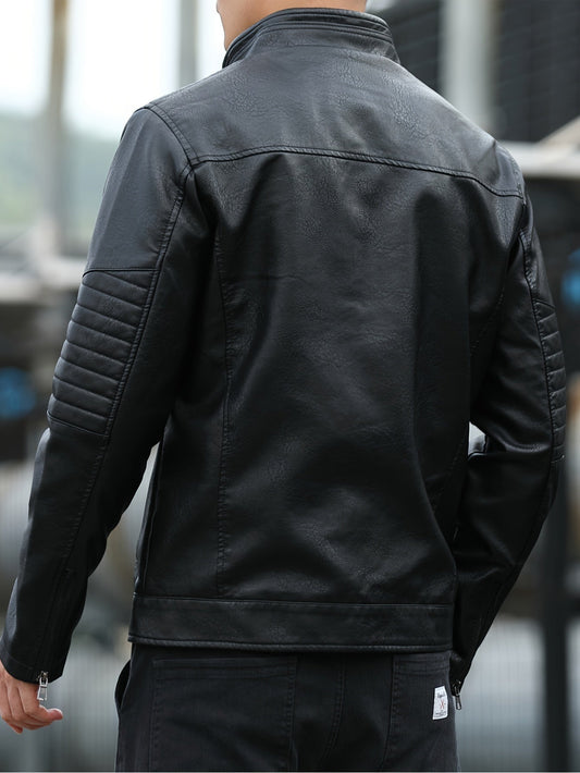 Élanor | Heren PU leren jas met ritszakken en vestkraag