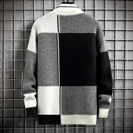 Veloria Fusion Sweater met Blokpatroon – Loose Fit Acryl Weefsel