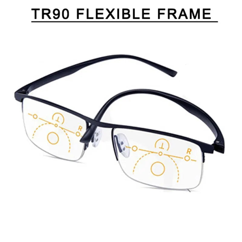 - Progressieve lenzen die vloeiend zicht geven van dichtbij tot verder weg.