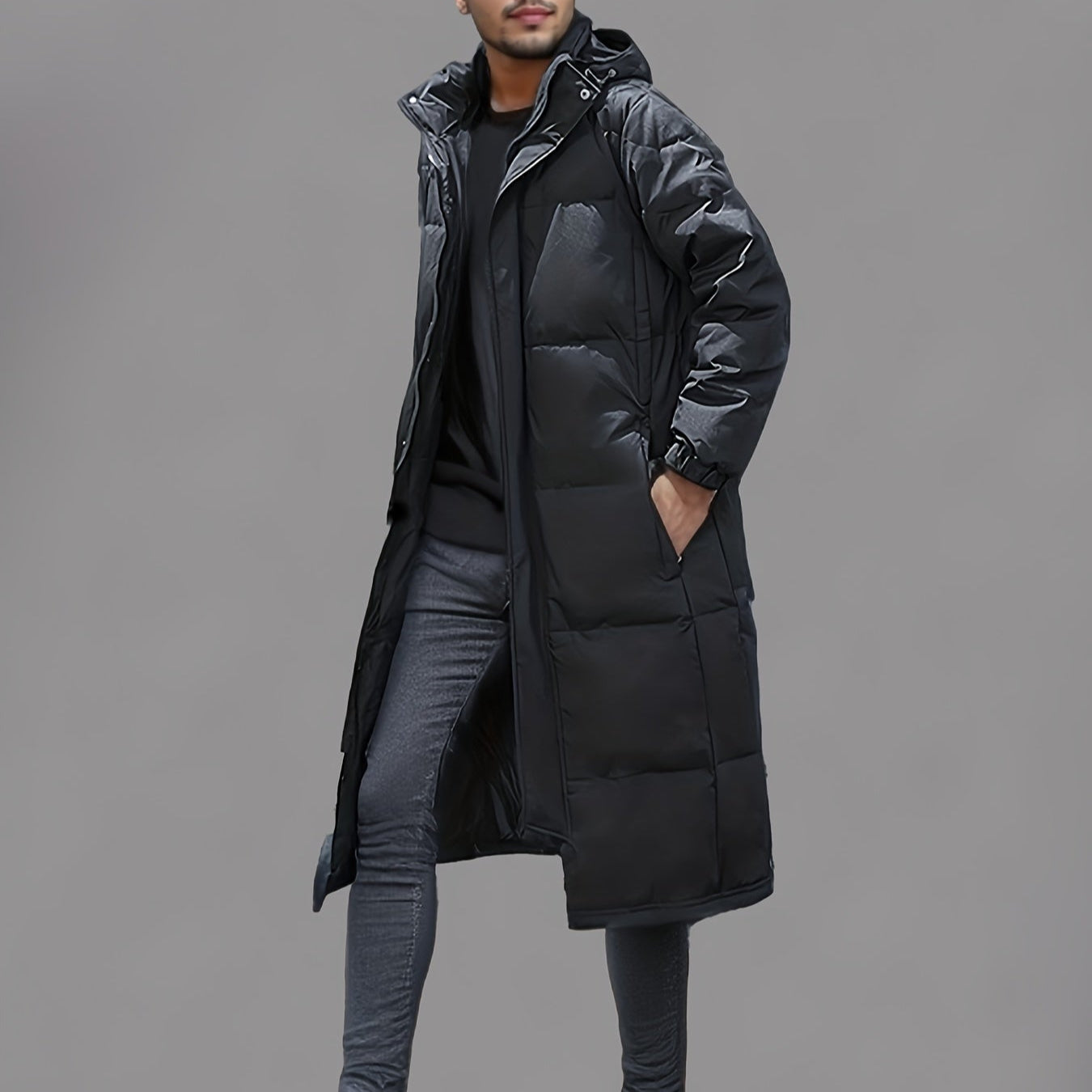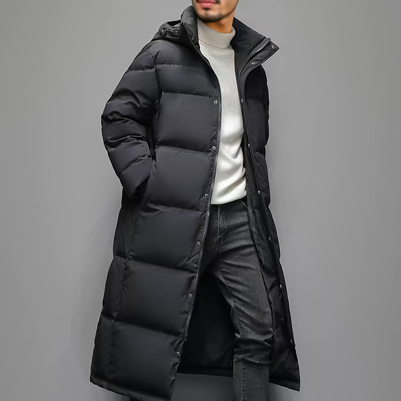 Veloria Lange Gewatteerde Herenmantel met Kap – Winddicht en Warm